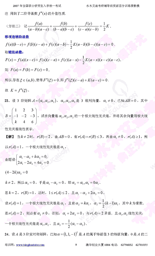 2007年硕士研究生入学考试数学(二)模拟试卷(9)