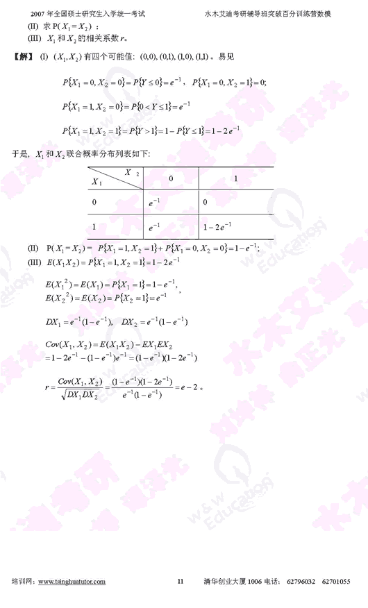 2007年硕士研究生入学考试数学(三)模拟试卷(11)