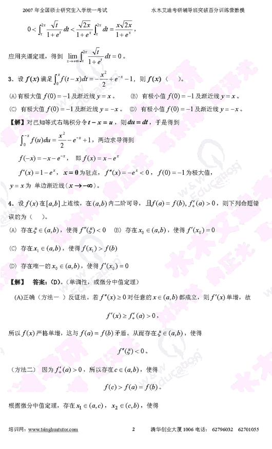 2007年硕士研究生入学考试数学(三)模拟试卷(2)