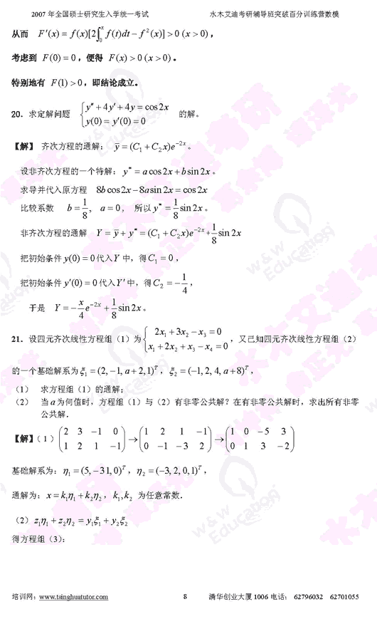 2007年硕士研究生入学考试数学(三)模拟试卷(8)