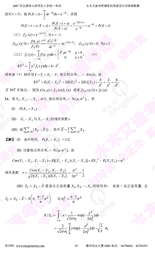 2007年硕士研究生入学考试数学(四)模拟试卷(10)