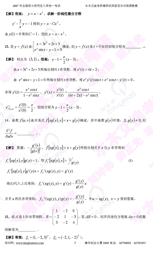 2007年硕士研究生入学考试数学(四)模拟试卷(5)