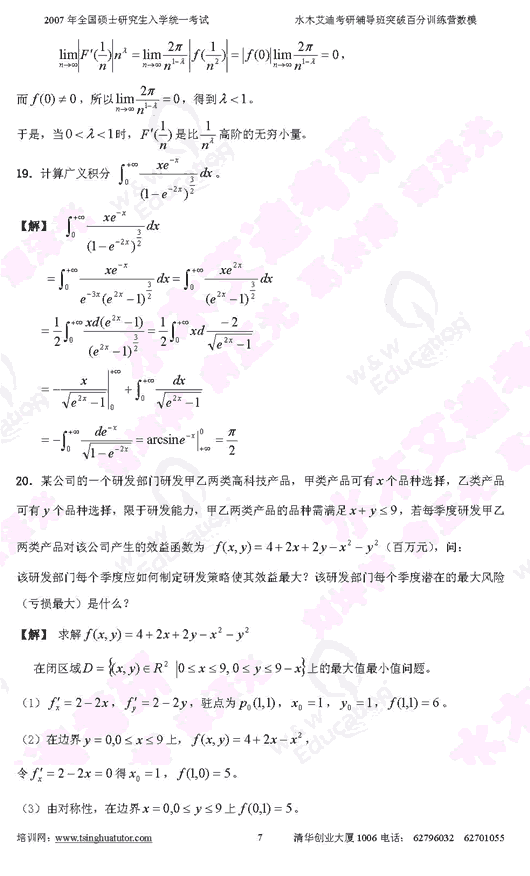 2007年硕士研究生入学考试数学(四)模拟试卷(7)