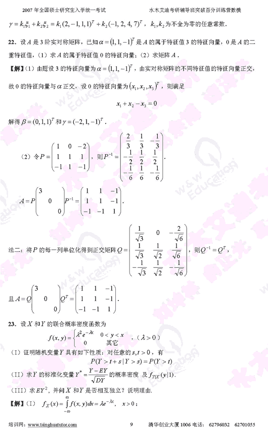 2007年硕士研究生入学考试数学(四)模拟试卷(9)