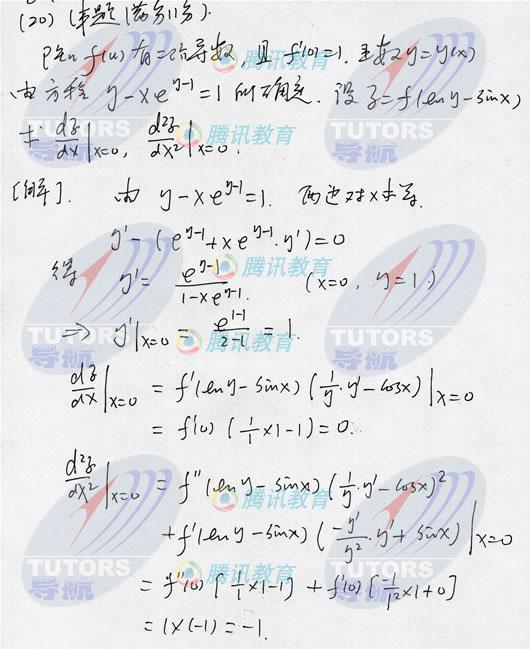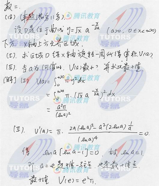 2007年研究生入学考试数学(二)试卷参考答案