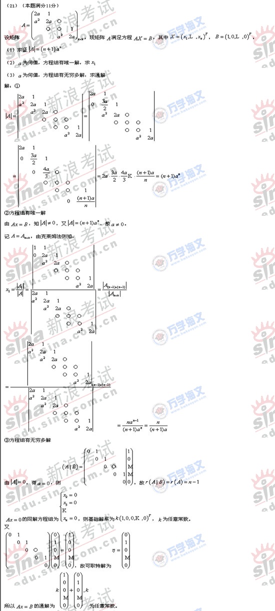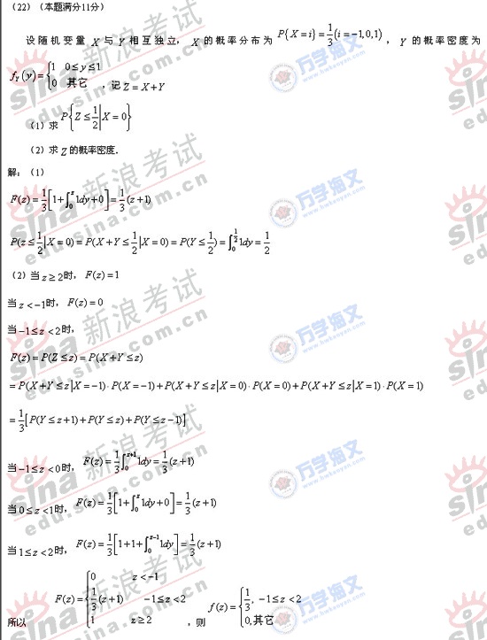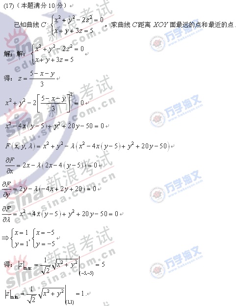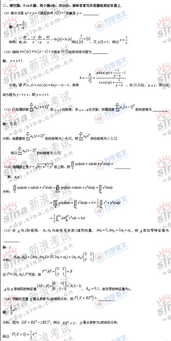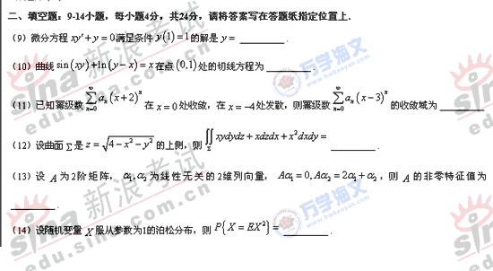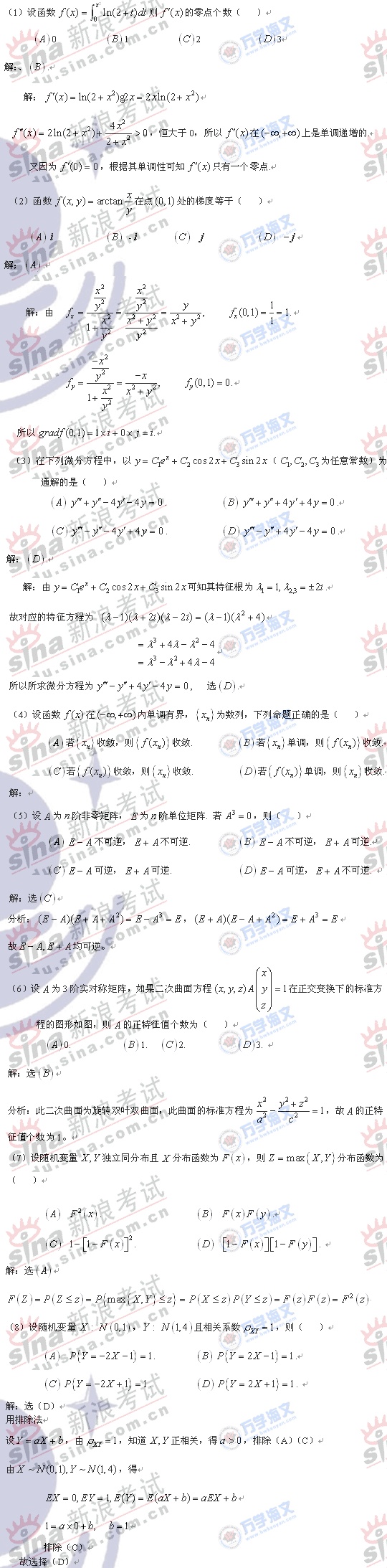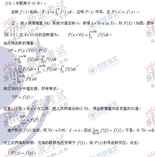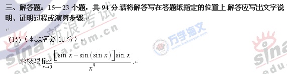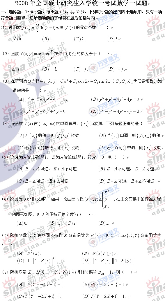 2008年硕士研究生入学考试数学一真题