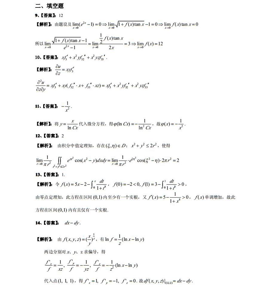 跨考教育2014年考研《数学一》模拟试题及参考答案(十)
