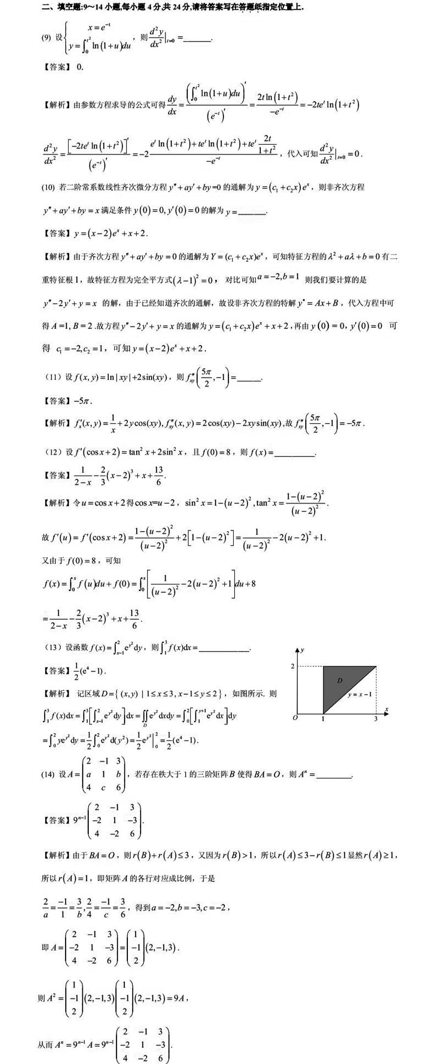 跨考教育2014年考研《数学二》模拟试题及参考答案(九)