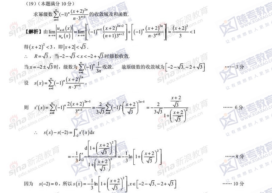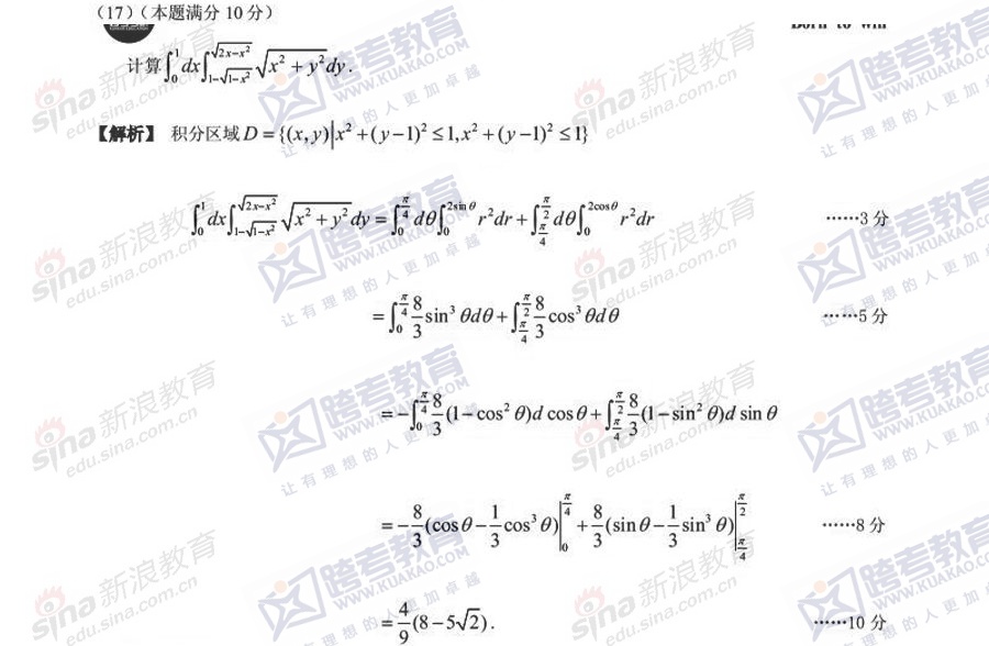 跨考教育2014年考研《数学二》模拟试题及参考答案(十)