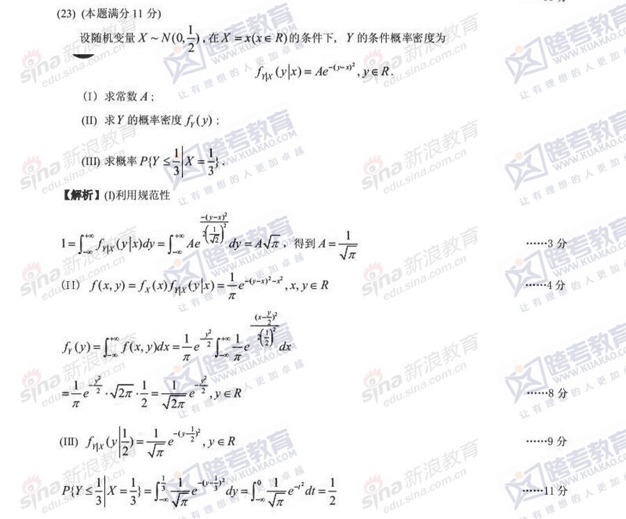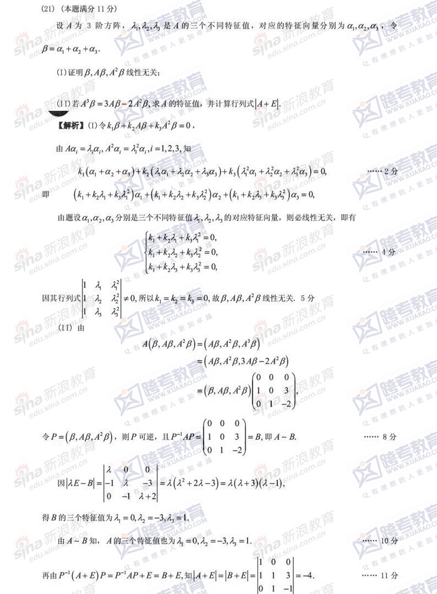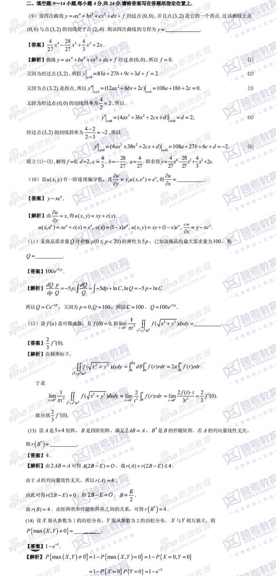 跨考教育2014考研数学二冲刺模拟试题及参考答案汇总