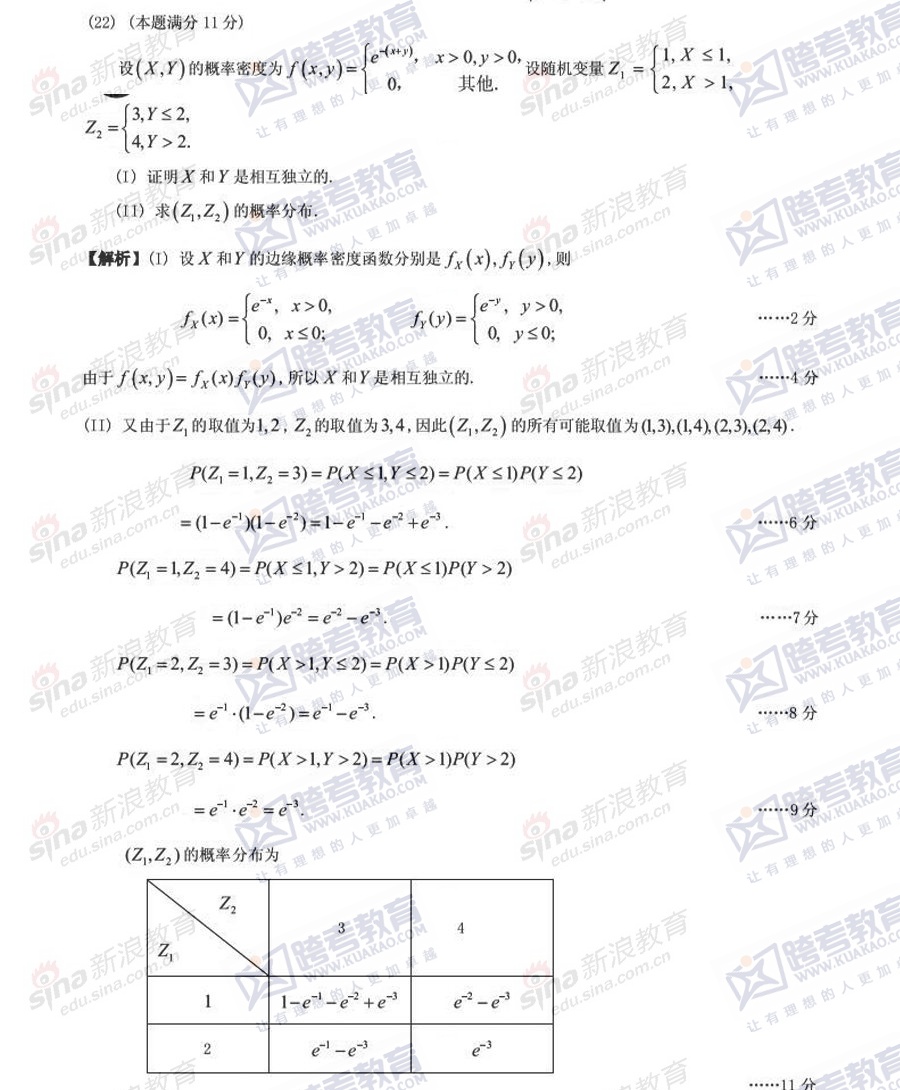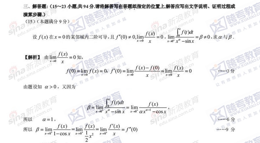 跨考教育2014年考研《数学二》模拟试题及参考答案(九)