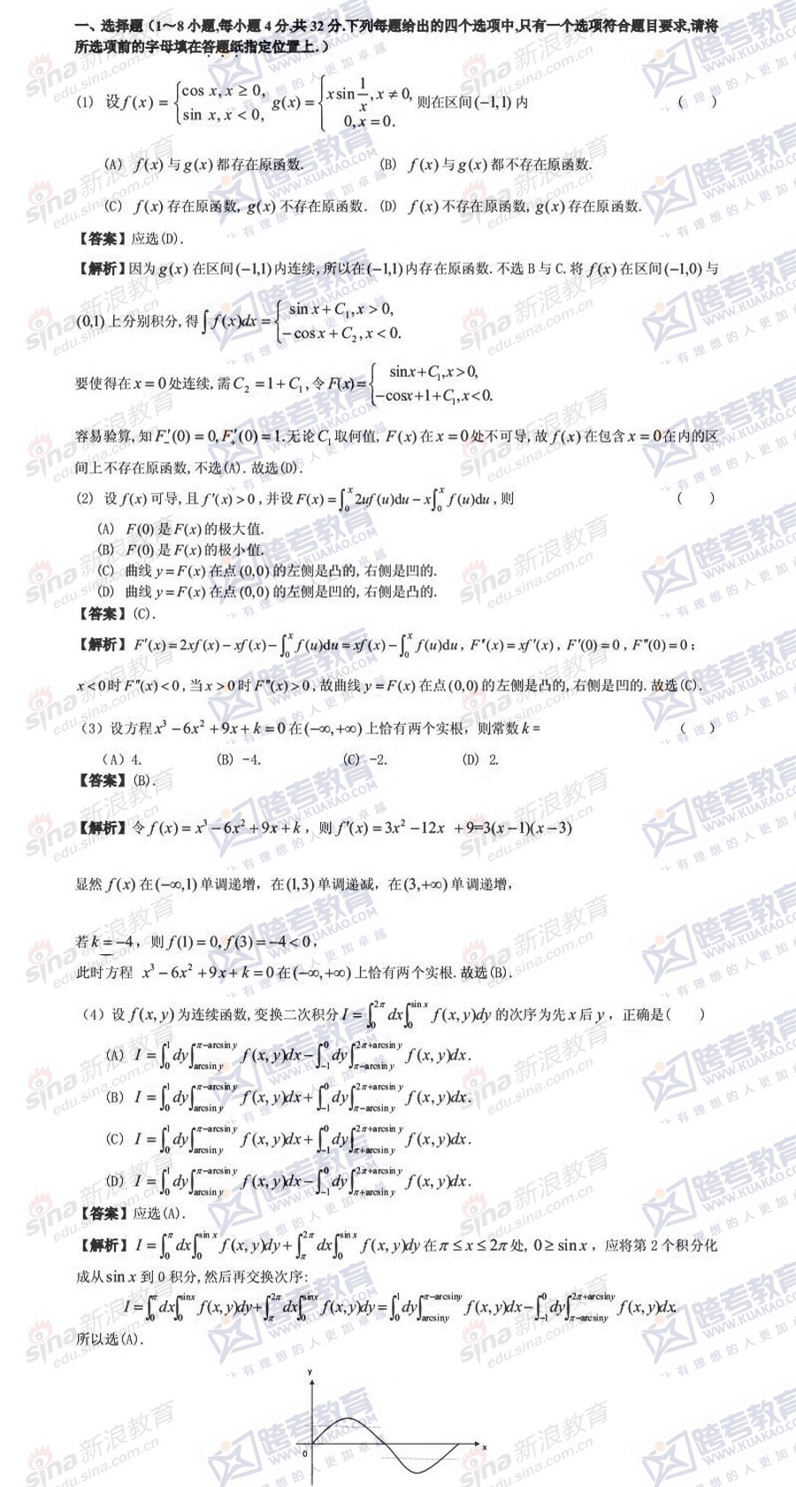 跨考教育2014年考研《数学二》模拟试题及参考答案(八)
