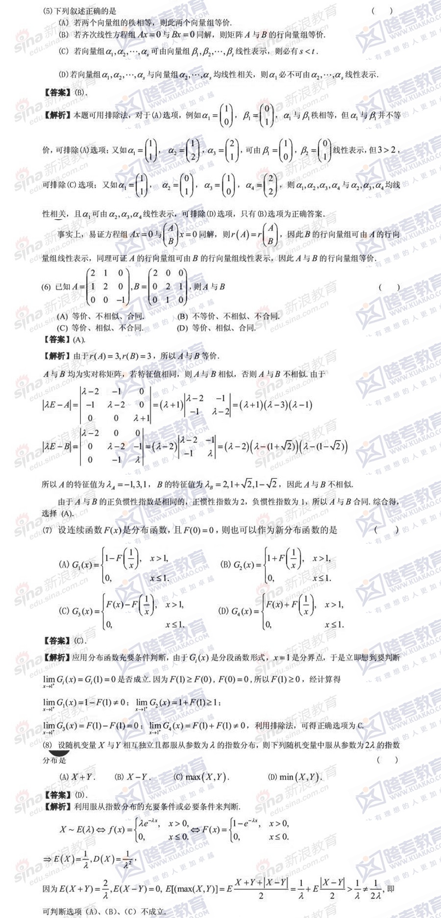 跨考教育2014年考研《数学三》模拟试题及参考答案(五)
