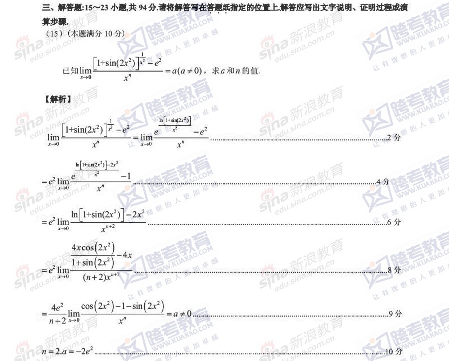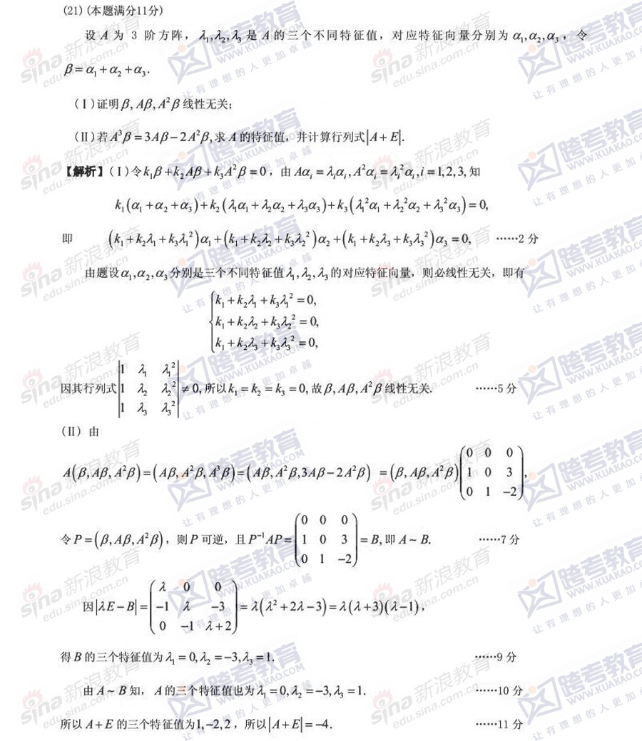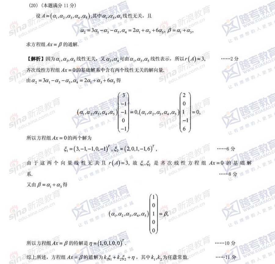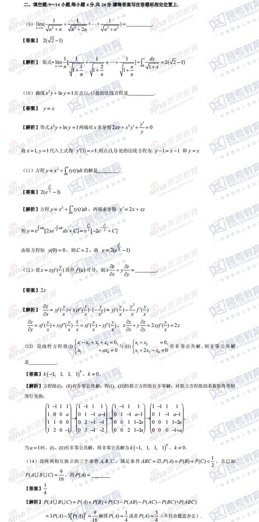 跨考教育2014考研数学二冲刺模拟试题及参考答案汇总