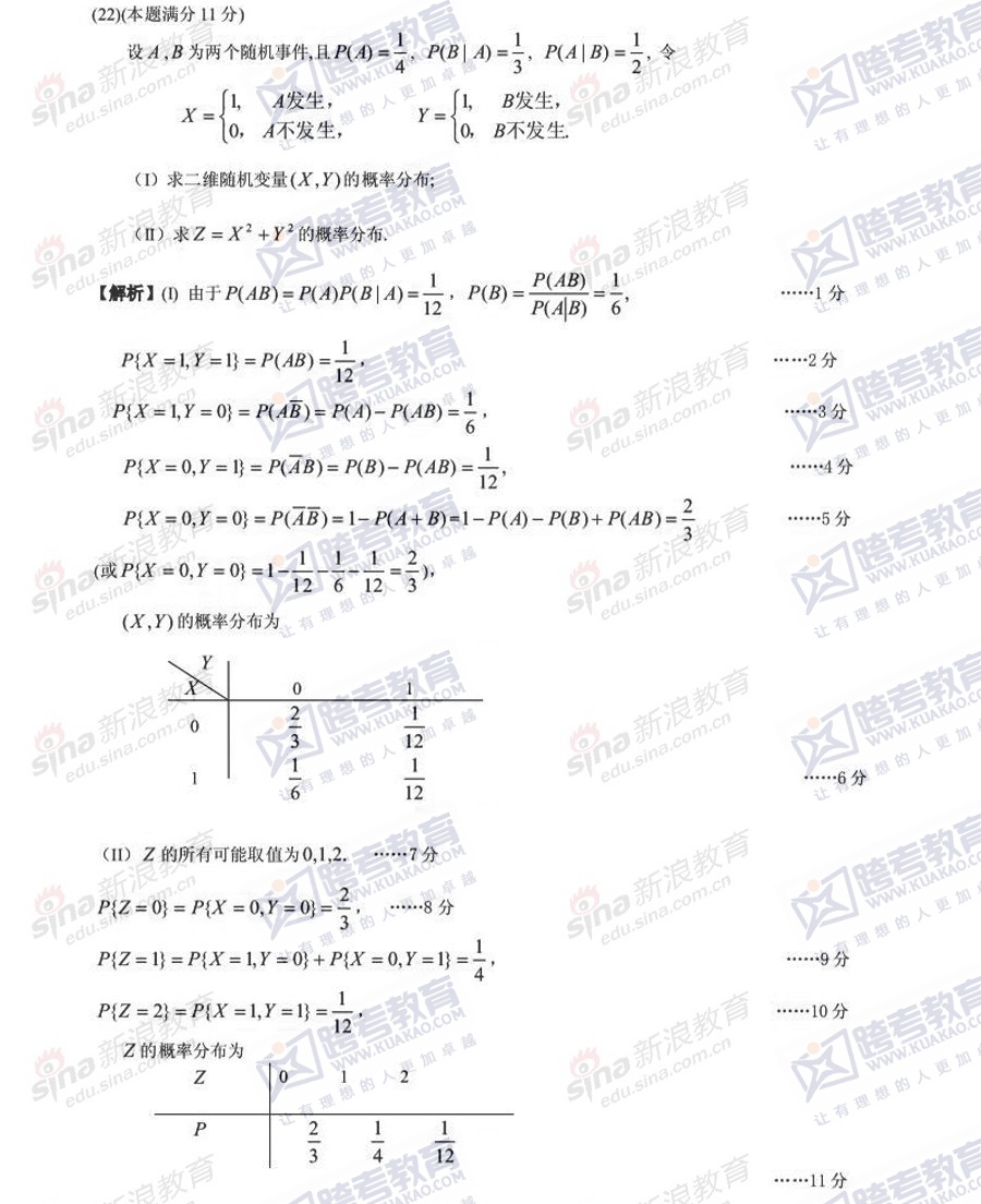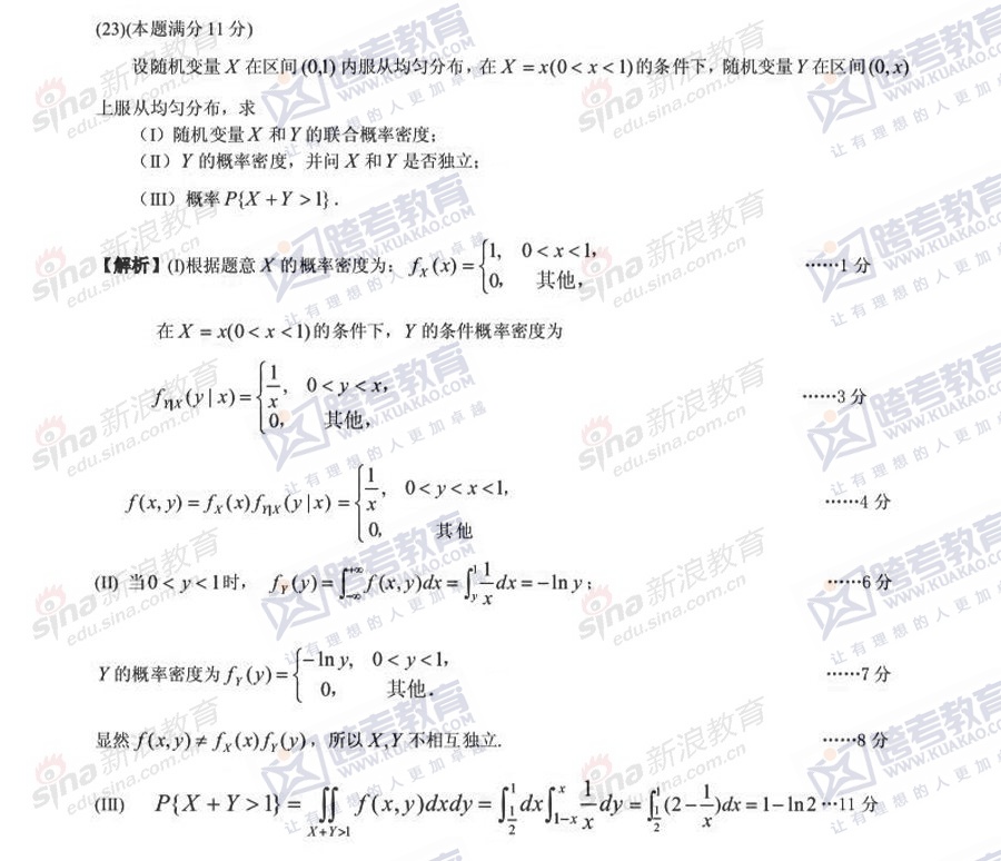 跨考教育2014年考研《数学三》模拟试题及参考答案(七)