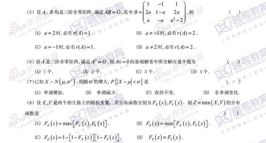 跨考教育2014年考研《数学三》模拟试题及参考答案(五)