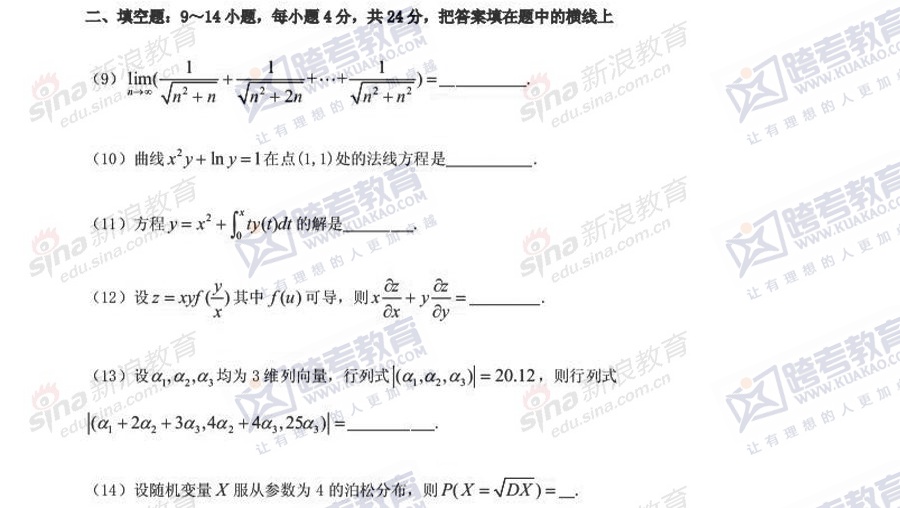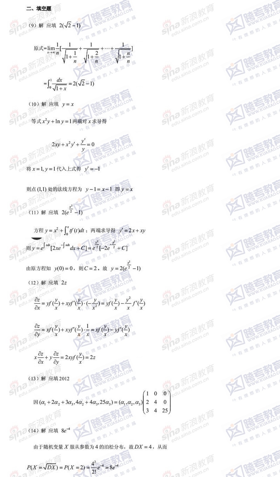 距离2014年研究生考试还有最后几天。新浪小编整理了2014年考研[微博]冲刺阶段《数学二》模拟题,希望对备考的你有所帮助。 ...