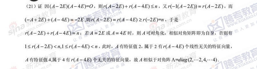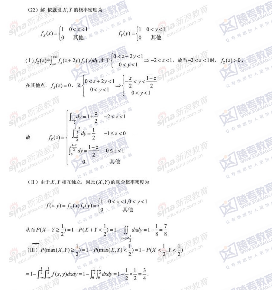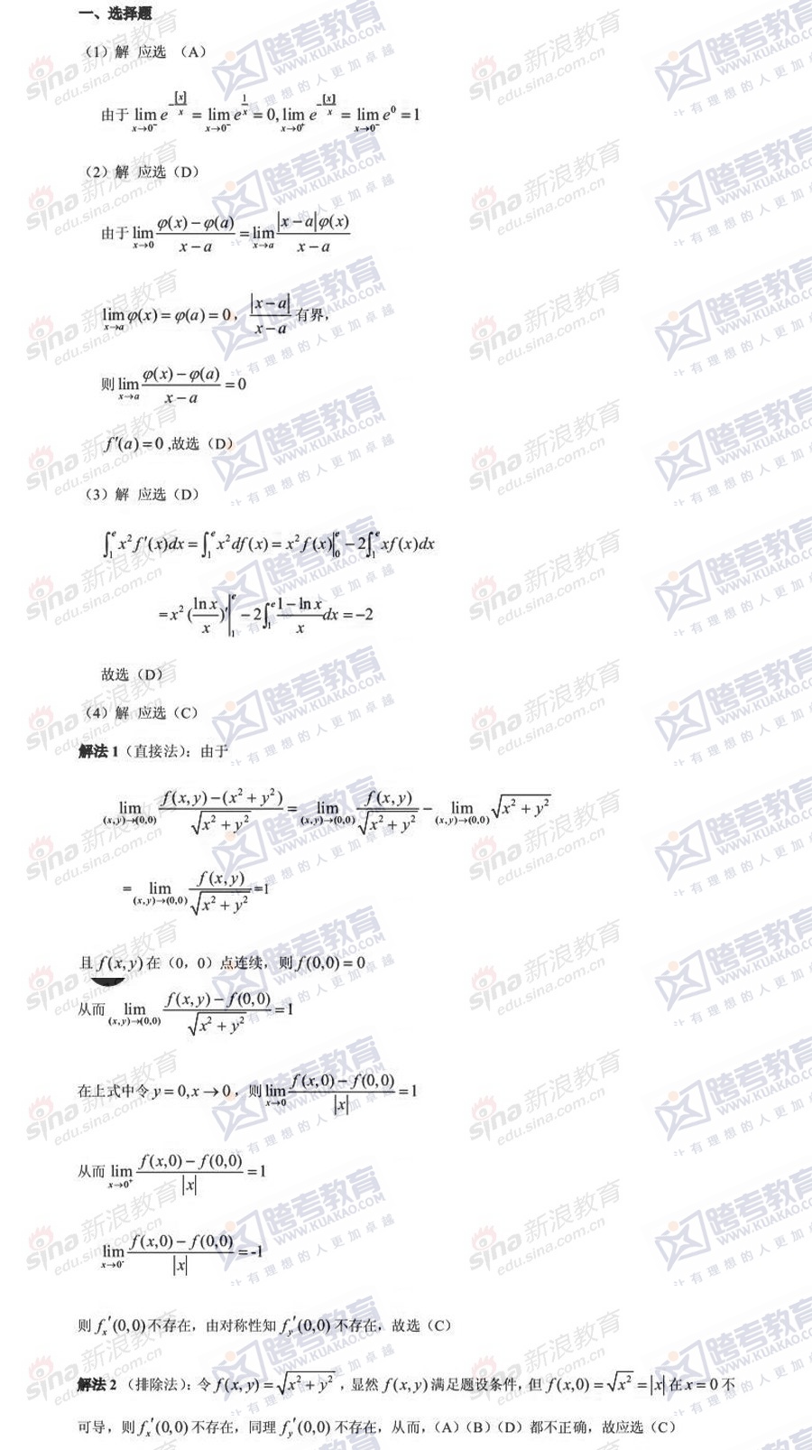 跨考教育2014考研数学二冲刺模拟试题及参考答案汇总