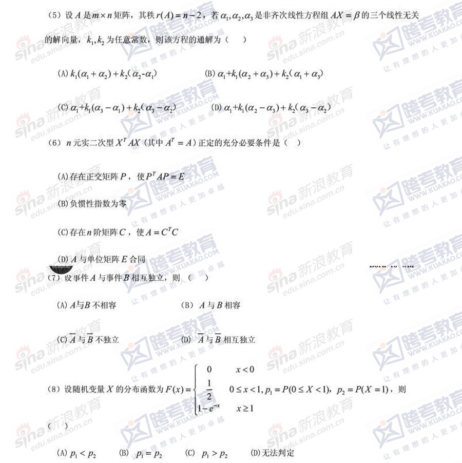 跨考教育2014年考研《数学三》模拟试题及参考答案(八)