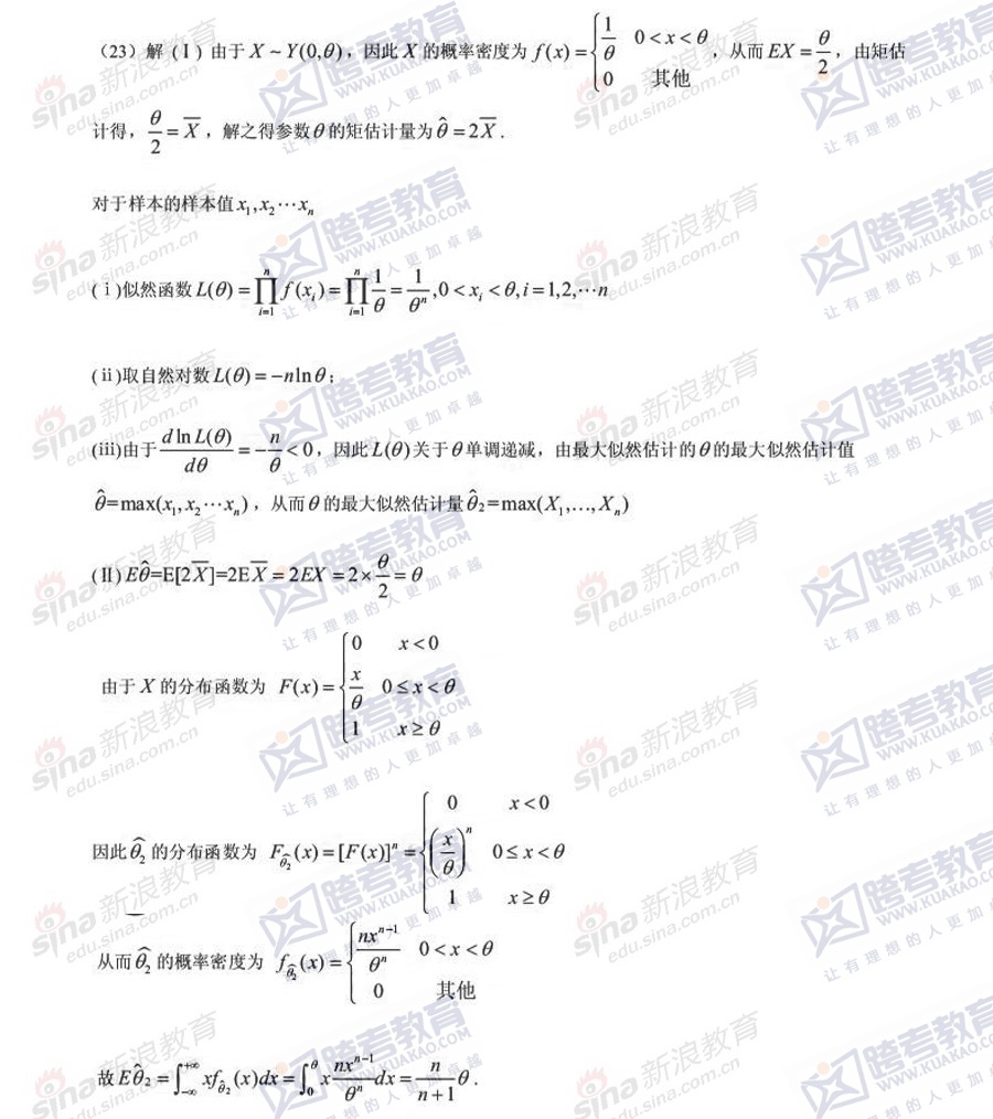 跨考教育2014年考研《数学三》模拟试题及参考答案(二)
