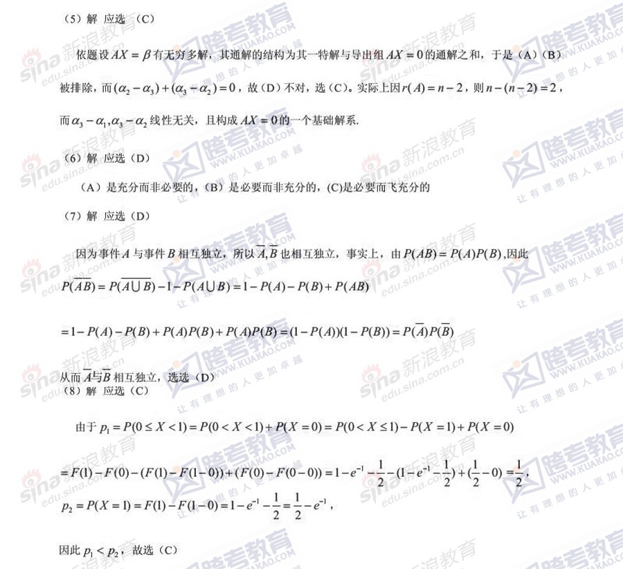 跨考教育2014年考研《数学三》模拟试题及参考答案(五)
