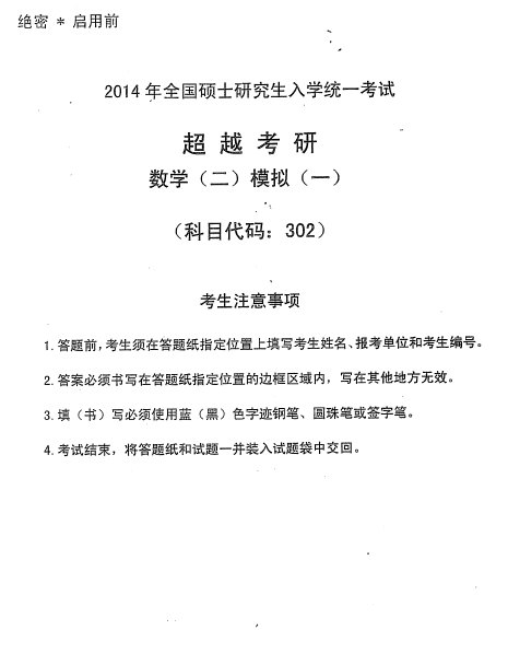 距离2014年研究生考试还有最后几天。新浪小编整理了2014年考研[微博]冲刺阶段《数学二》模拟题,希望对备考的你有所帮助。 ...数学资料 跨考教育 2014-01-10跨考教育2014年考研《数学二》模拟试题及参考答案(十)