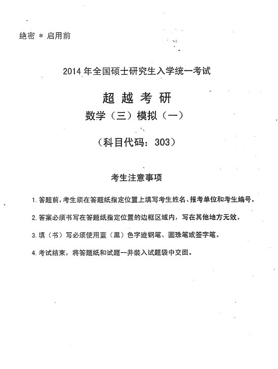 距离2014年研究生考试还有最后几天。新浪小编整理了2014年考研[微博]冲刺阶段《数学三》模拟题,希望对备考的你有所帮助。 ...