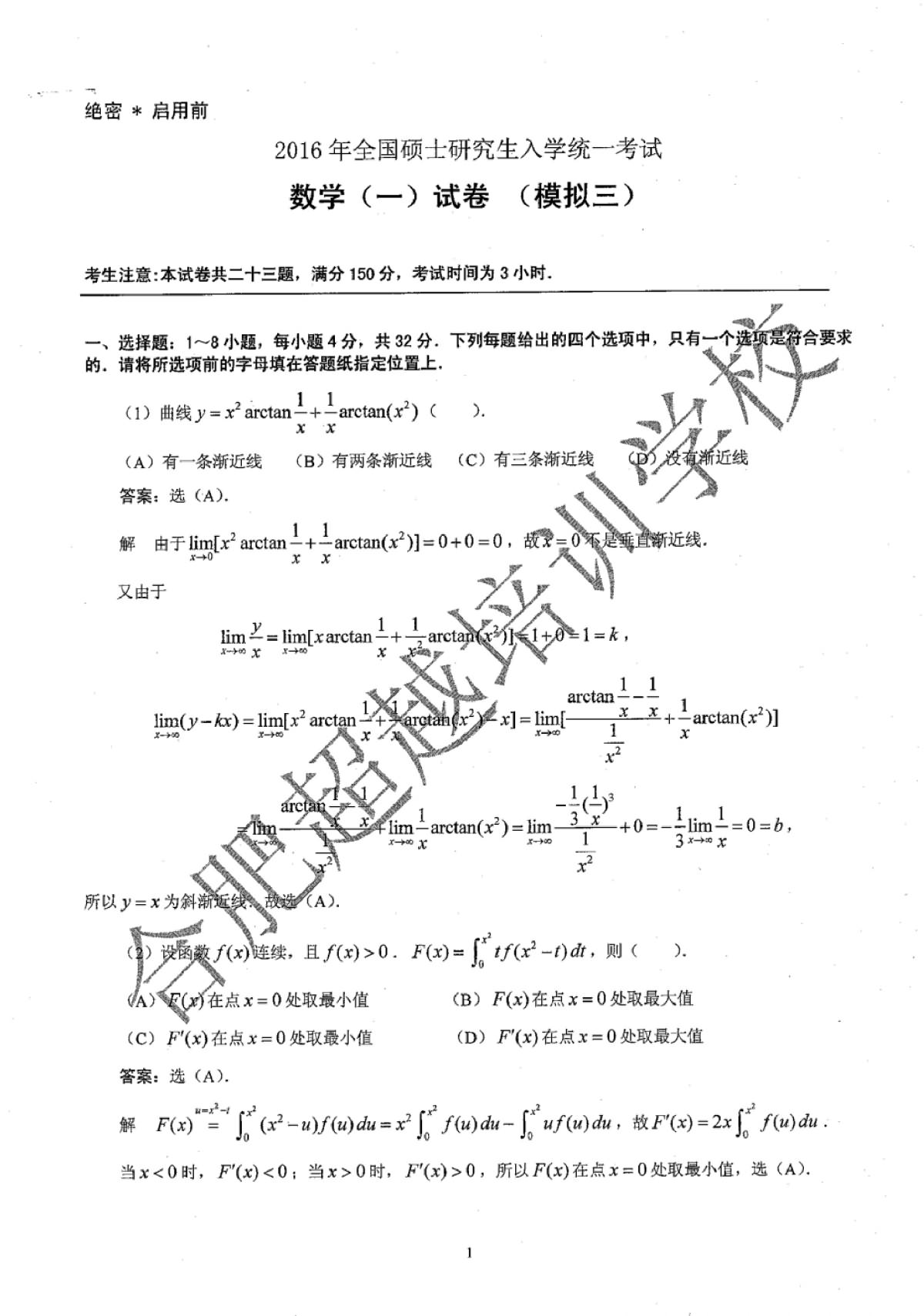 就总体上而言,2016数一的题目灵活性、综合性是比较强的。但是,如果我们揭开这个神秘的“面纱”,大家会发现事实上,考试的内容还是侧重于大家平时对基础知识的熟练程度以及累积程度,下面我把这个2016整个数一的考点为大家做一个汇总。(1)反常积分敛散性判断。(2)原函数的概念。(3)微分方程的概念。(4 ...