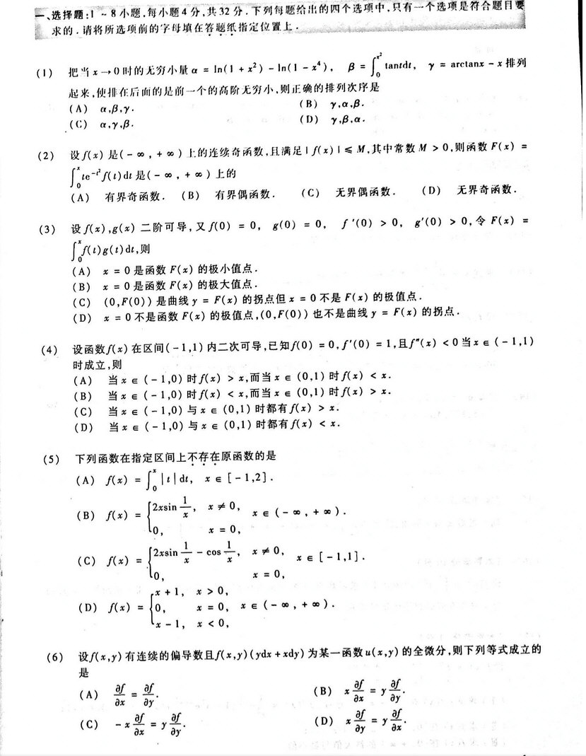 【李正元】数学预测试卷数学二(全真模拟经典400题)精编(10)