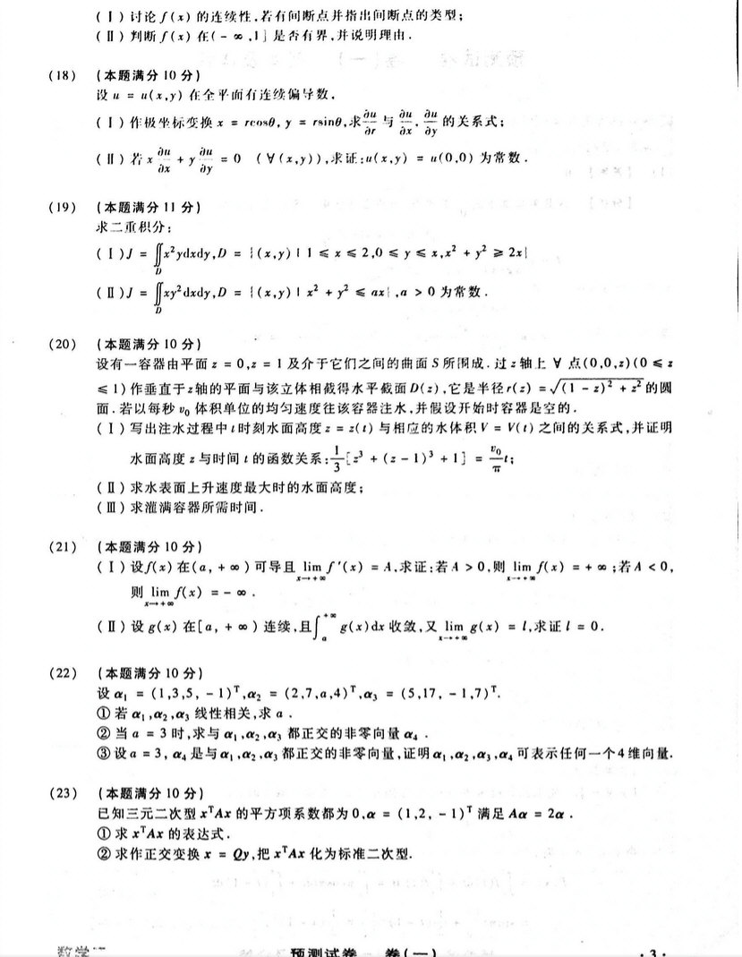 【李正元】数学预测试卷数学二(全真模拟经典400题)精编(3)