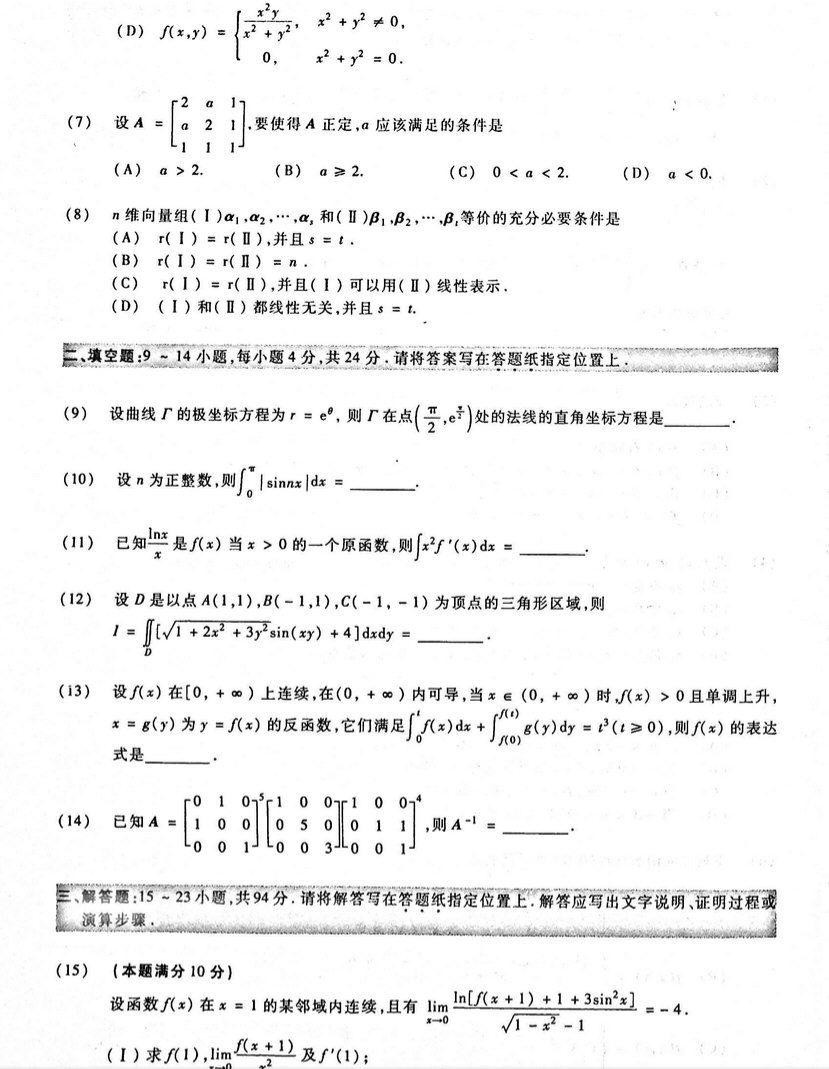 【李正元】数学预测试卷数学二(全真模拟经典400题)精编(5)