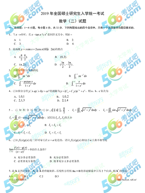 考试视频 本站小编 免费考研网 2018-11-232019考研数学二大纲已发布,今年的题型和分值部分有无变化?下文为大家来梳理下2019考研数学二题型和分值分布: ...