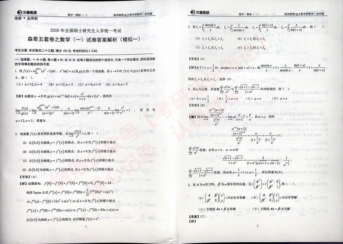 2020合工大森哥五套卷习题与答案考研数学一(11)