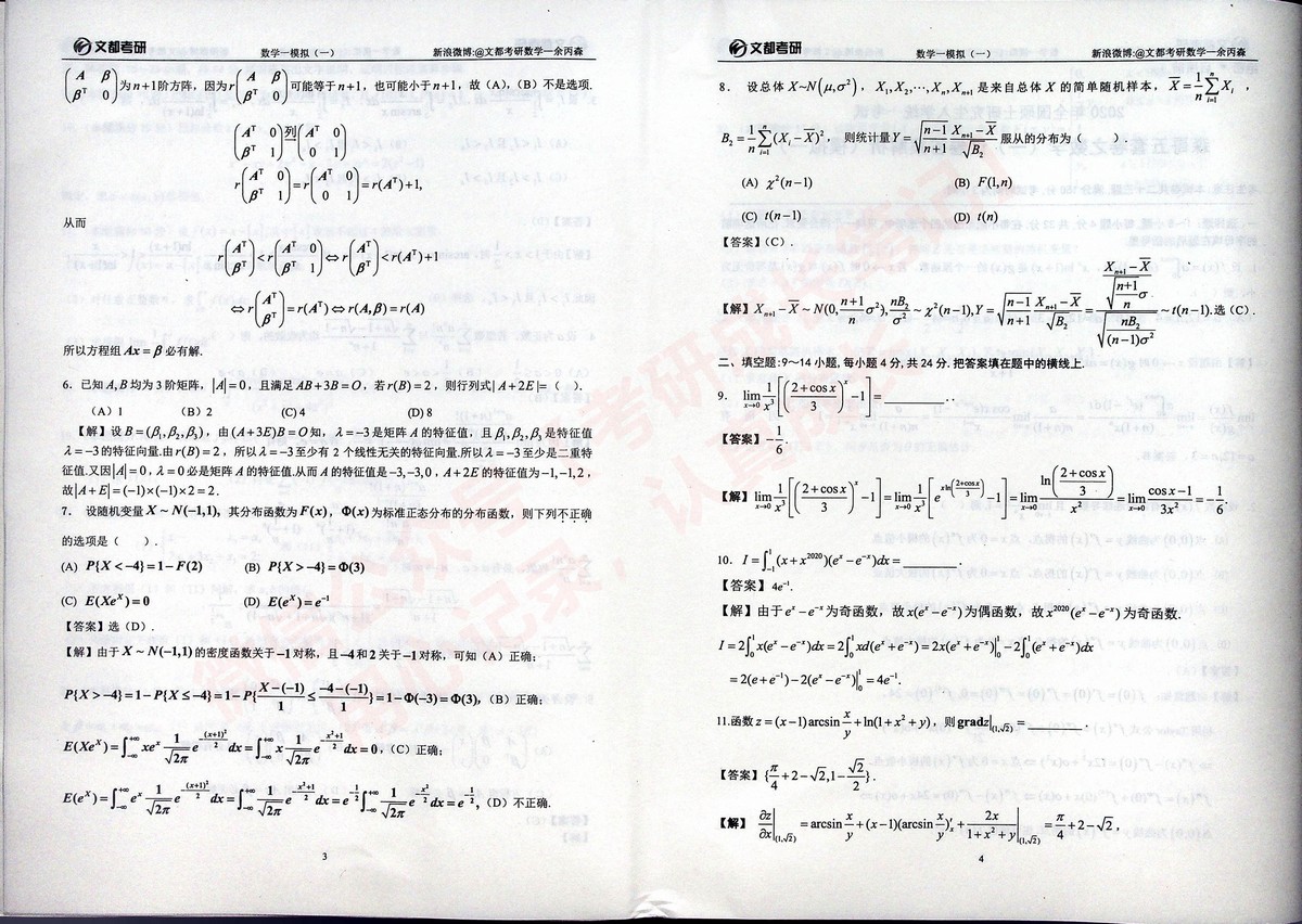 2020合工大森哥五套卷习题与答案考研数学一(12)
