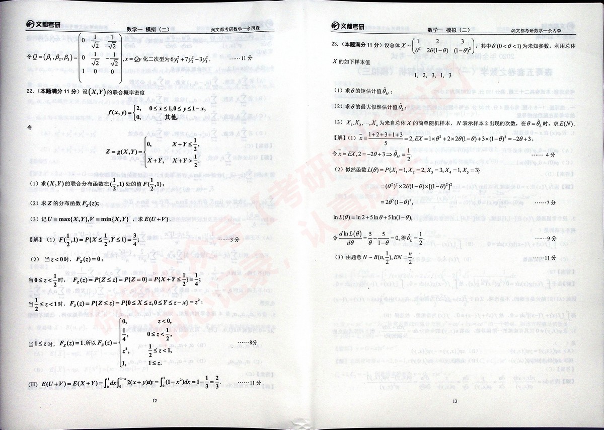 2020合工大森哥五套卷习题与答案考研数学一(23)