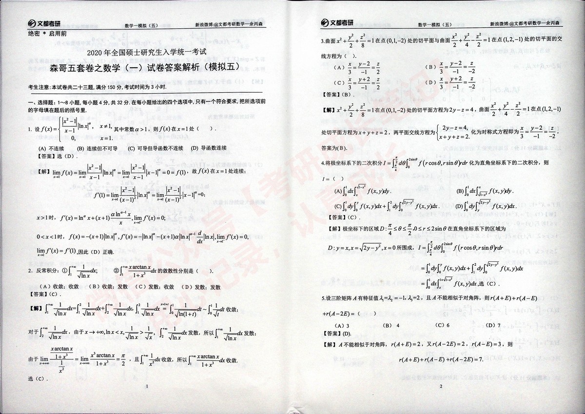 2020合工大森哥五套卷习题与答案考研数学一(36)