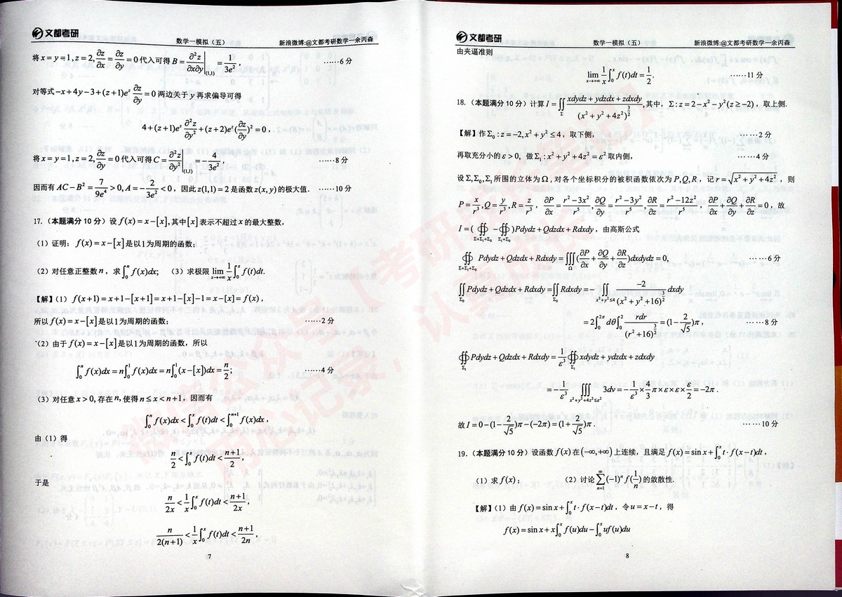 • 武汉大学653数学分析历年考研真题汇编(含部分答案)