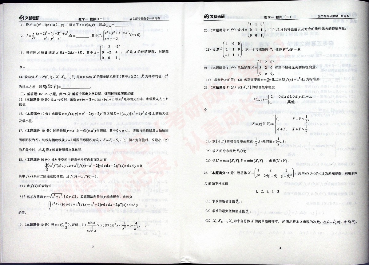 2020合工大森哥五套卷习题与答案考研数学一(4)