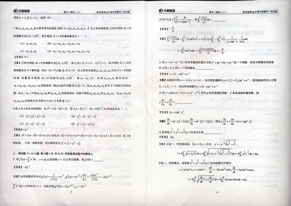 2020合工大森哥五套卷习题与答案考研数学二(20)