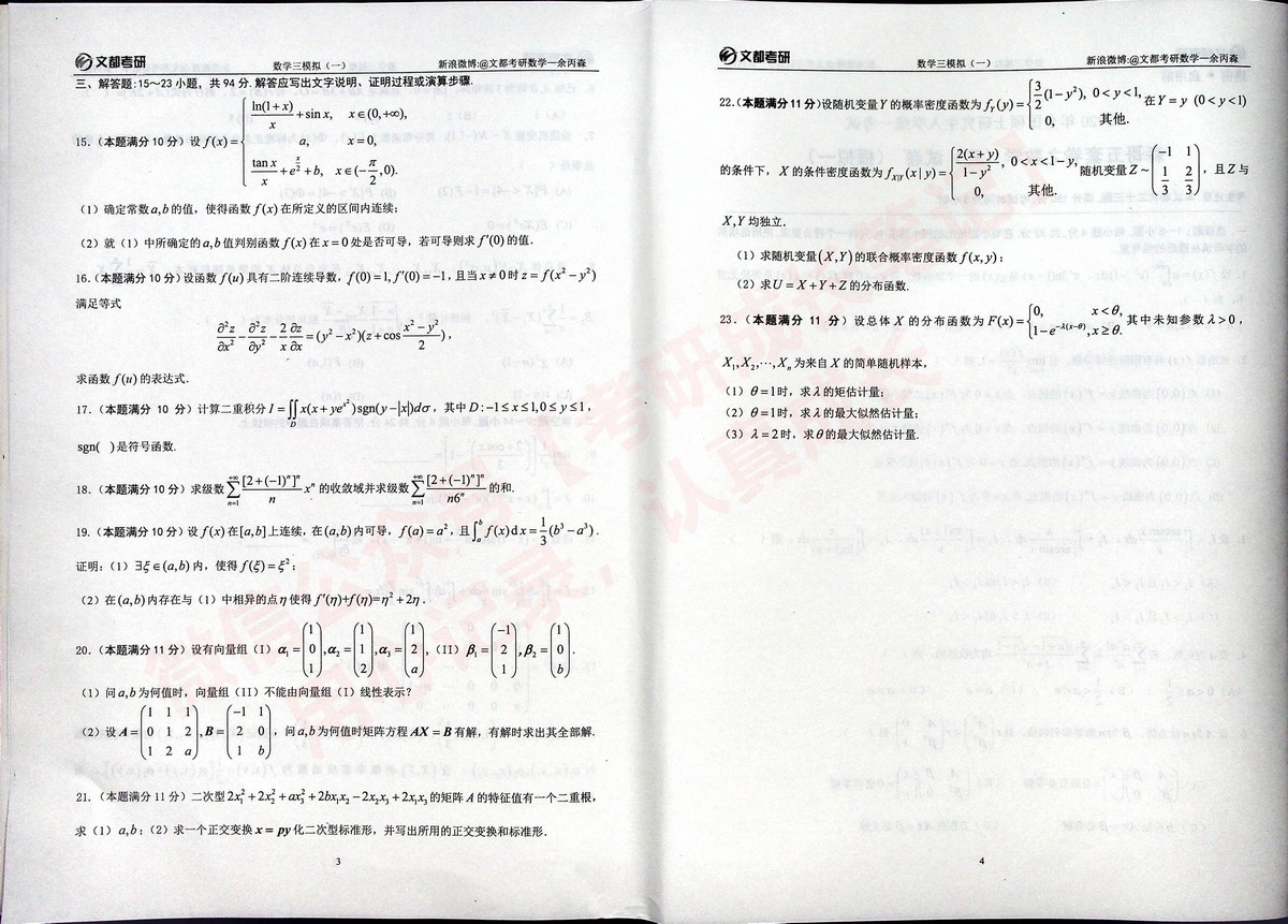 2020合工大森哥五套卷习题与答案考研数学三(2)