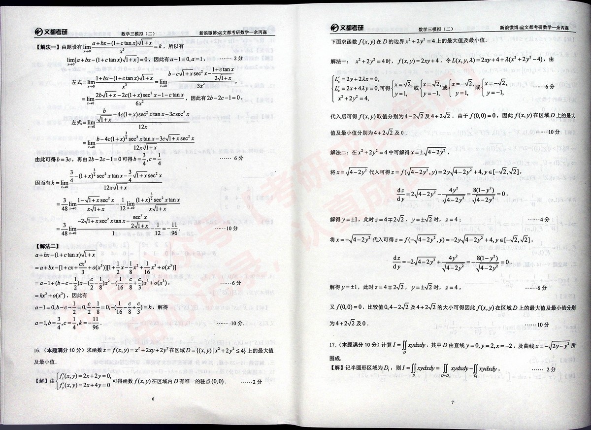 2020合工大森哥五套卷习题与答案考研数学三(20)
