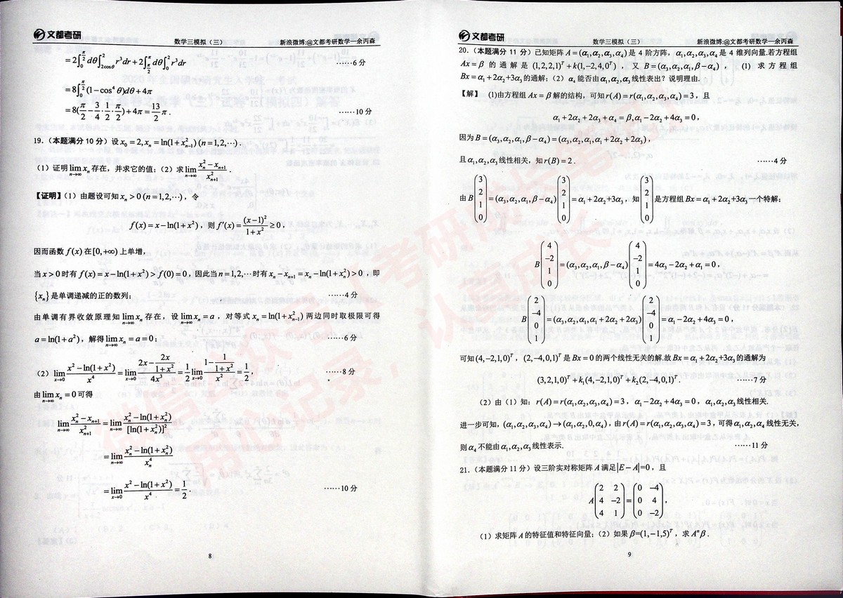 2020合工大森哥五套卷习题与答案考研数学三(27)