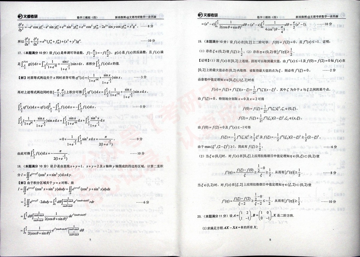 2020合工大森哥五套卷习题与答案考研数学三(32)