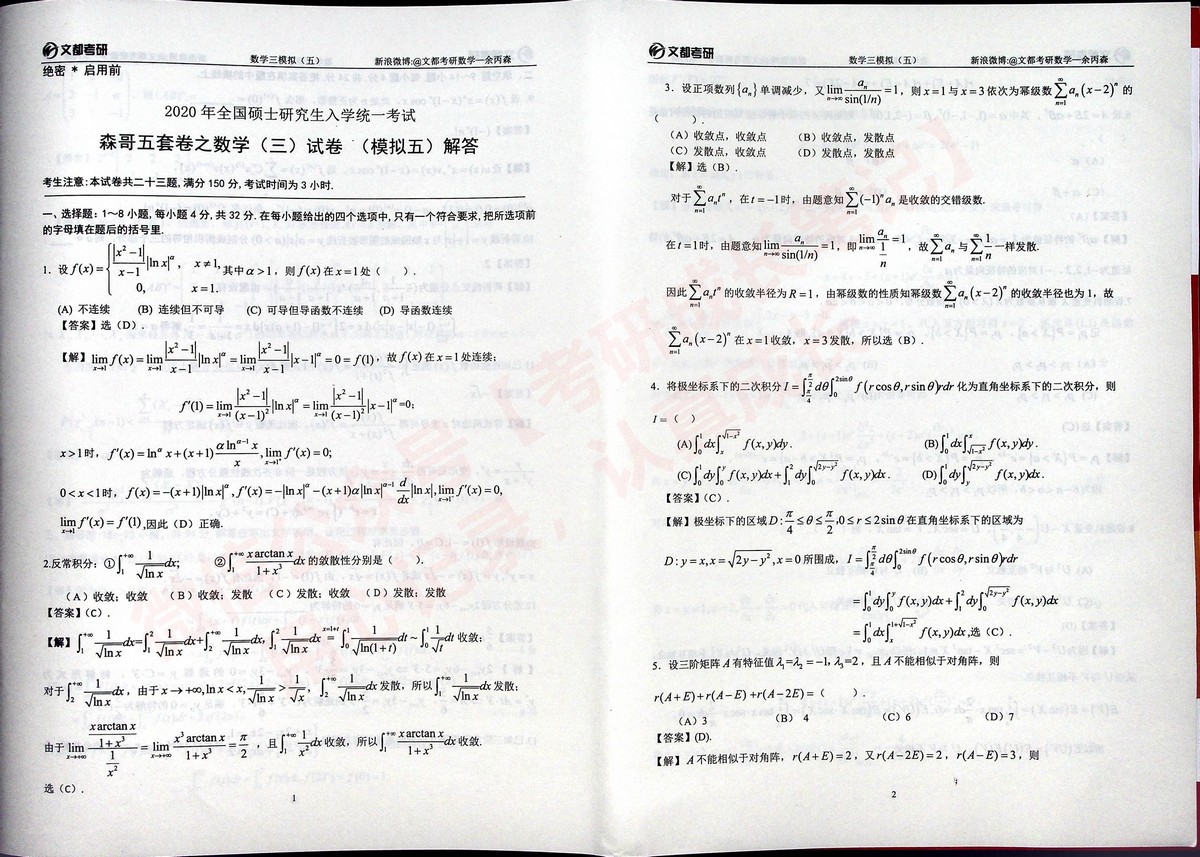 2020合工大森哥五套卷习题与答案考研数学三(35)