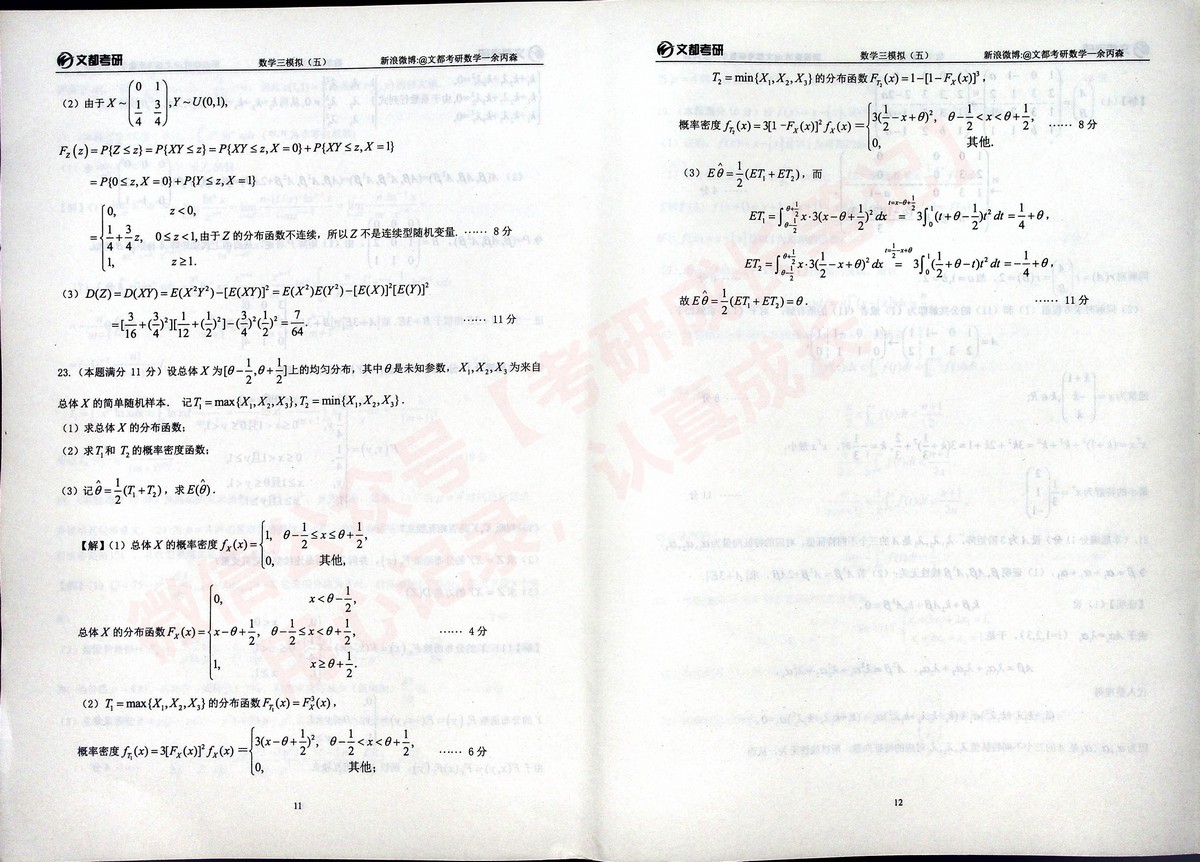 2020合工大森哥五套卷习题与答案考研数学三(40)