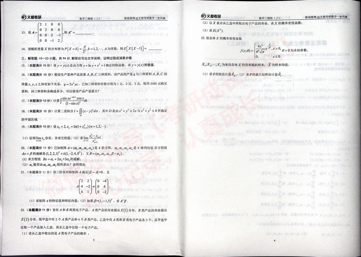 2020合工大森哥五套卷习题与答案考研数学三(6)