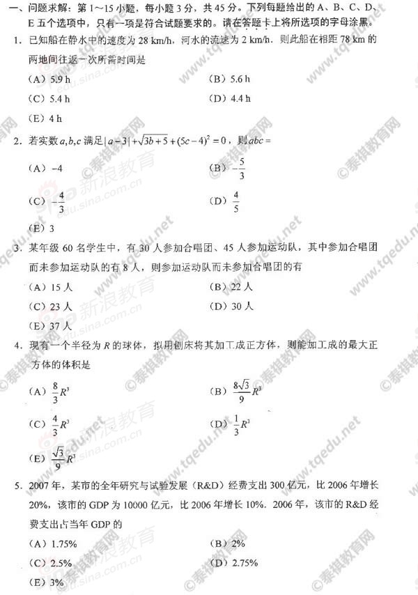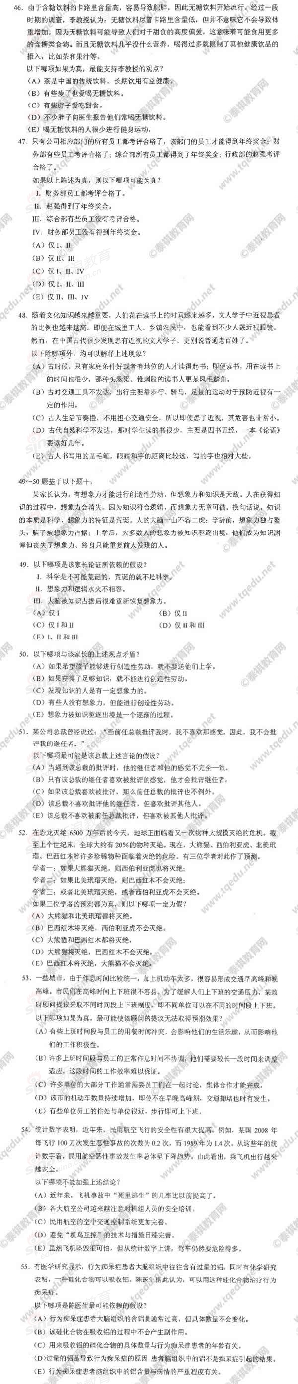2011年MBA综合能力试题、答案