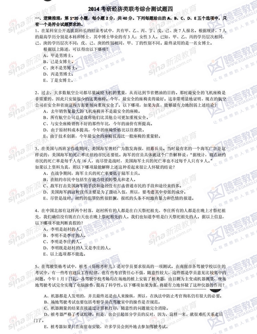 跨考教育2014年考研《经济类联考综合》冲刺模拟题及参考答案(四)