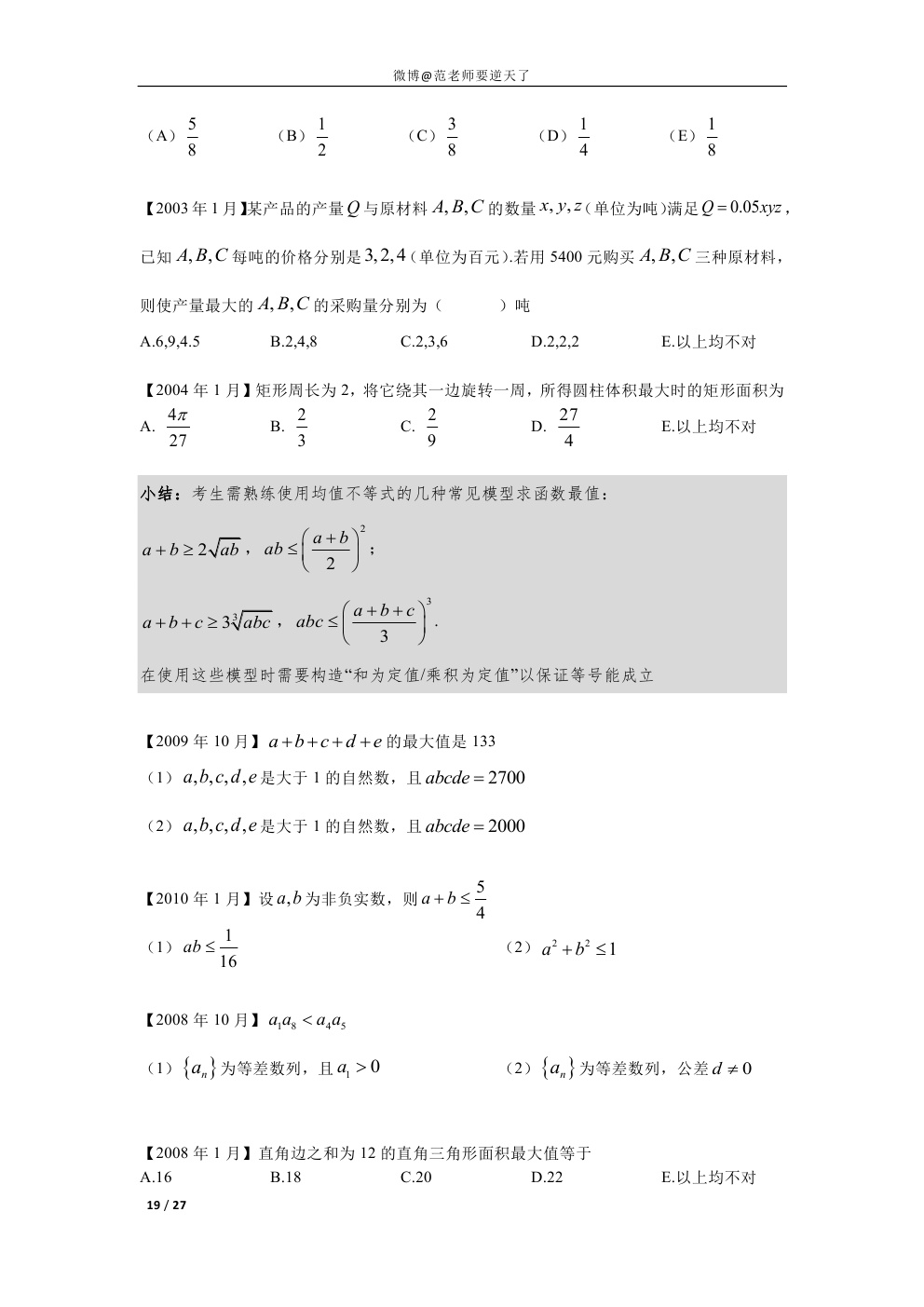 1997-2015管理类联考真题模块化归类详解(函数方程不等式部分无解析版)(19)