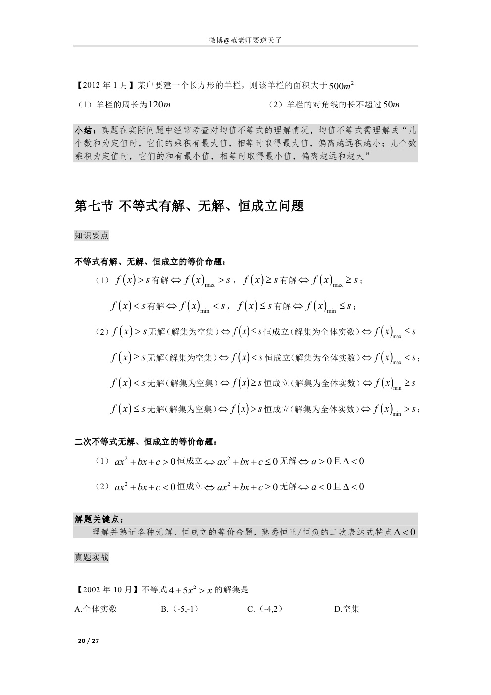 1997-2015管理类联考真题模块化归类详解(函数方程不等式部分无解析版)(20)